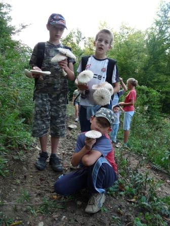 Ujo Rudo, ktorého sme stretli, nám dovolil použiť jeho posedenie s ohniskom. Keď sme sa posilnili, vyrazili sme na Zakráľovčie. Vošli sme cestičkou do lesa. Zrazu sme sa cítili ako v rozprávke Mrázik. V lese, tak isto ako v rozprávke Mrázik, všade samé hríby. Jedle bedle, osikáče, plávky....