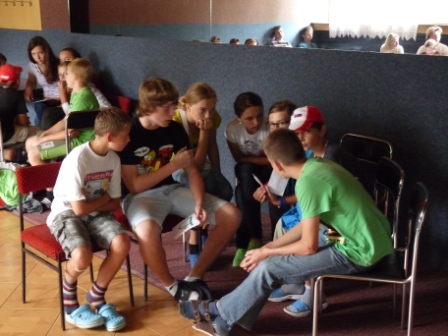 Nedeľa 5.8.2012 Pomaly, ale isto nastal posledný deň nášho letného tábora. Po budíčku a rozcvičke nás čakajú raňajky. Posilnení vianočkou a kakaukom sa odoberáme do svojich izieb. Ťažká úloha, pobaliť sa. Niekto ukladá, niekto len nahádže. Uvidíme, ktorá mama bude mať pri vybaľovaní radosť. Znášame kufre do vestibulu a všetci sa stretávame v spoločenskej miestnosti. Každý si v hlave opakuje, čo sa naučil. Čaká nás záverečný kvíz. Deny nám pripravila 22 otázok, ťažšie sa prepletajú s ľahšími....