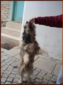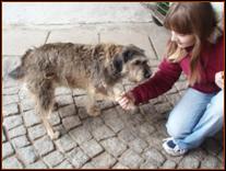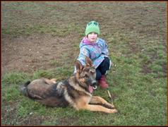 Šly jsme pozorovat psa u Kristýny. Je to fenka. Kristýnin pes Tlapina umí: sedni, lehni, hop, popros, k noze a přeskočit plot. Toto všechno ji naučila, když byla malé štěně. Za odměnu dostane půlku piškotu. |