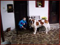 Náš pes Barry váží asi 75 kg. Bylo dost těžké ho dostat na váhu. Když mu ale dva dospělí pomůžou, tak to trochu jde. Je to bernardýn a váží jako dospělý člověk. |