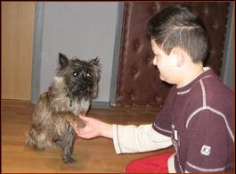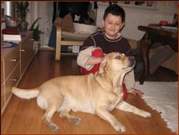U susedov máme psíkov: jeden sa volá Densy a druhý Majky. Densina je pekný biely labrador. Má rada piškóty. A je strašne lenivá. Majky je zasa dlhosrstý psík. Jeho plemeno sa volá teriér. Má rád keksíky a je veľmi hravý a bystrý. Temperament vlastne znamená, či je pes alebo lenivý a hravý. Ten na ľavo sa volá Densi a v pravo Majky. |