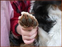 Péčí o tlapky zaručíme psovi nejen jistý komfort, ale nepřímo mu šetříme jeho klouby. Citlivým psům je vhodné ošetřit tlapky speciální mastí, indulonou, lékařskou vazelínou nebo alespoň troškou sádla. U psů, kterým prorůstá srst mezi prsty, je vhodné tuto srst vytříhat, aby se na ni v zimě zbytečně nelepil sníh. Pokud je pes na některé tlapce zraněný, je vhodnější při vycházce použít speciální „botičky“ pro psy. Po návratu z vycházky umyjte pejskovi tlapky vlažnou vodou. Potom vysušte a znovu ošetřete mastí. |