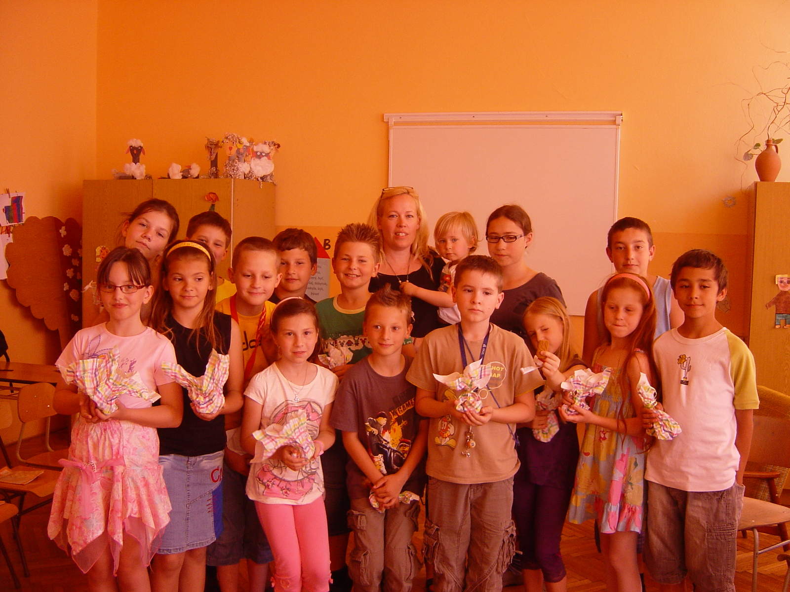 | 3. Popíšte zaujímavý moment z vyučovania Hrdinov dejín (netradičnú aktivitu, zaujímavosť z hodiny, zážitok, kvalitný výstup učiteľa alebo žiakov a pod.) : Astrid Lindgrenová-deň šibalstiev s Pipi.Dievčatá vo vlastných outfitoch sa predviedli na módnej prehliadke.Prišiel sa pozrieť aj p.riaditeľ.Bol prekvapený našimi vedomosťami.Požičal si knihu Hrdinovia,aby sa aj on čo-to dozvedel.Knihu sme mu darovali, ale čo my.Pustili sme sa do výroby vlastnej spolu s pánom Gutenbergom.Pozvali sme aj spisovateľku G.Revickú a kníhviazača.Tak ako pán Gutenberg,i my sme si svoju prvotinu ručne dokreslili. Deň liečiteľa Cypriána-prichystala som bylinky a prekvapenie.Ak na ceste, ktorú určím, nájdu deti aspoň 8liečivých rastlín, založíme si bylinkovú záhradu a čajovňu.Úlohu splnili, a tak sa časť mojej záhrady zmenila na bylinkovú a stala sa z nej čajovňa u Janka Chňapka.Bylinky deti sami zasadili, poliali a teraz čakajú na zber.Zapojila sa i mamička, ktorá nám poslala bylinky.Čaj z nich si deti vychutnali a tešia sa na ten z vlastných byliniek.Téma, ktorá má veľa podôb je Čarodejka.My sme ju poňali svojsky a pozvali sme na rozhovor niečím iné, výnimočné mamy- "Mamu začínajúcej hviezdy z Hlasu ČS" a "Mamu z inej krajiny-Belgicka".Zistili sme,že tieto mamy sú v podstate úplne rovnaké ako tie naše-starostlivé a milujúce.Našim, tiež výnimočným mamám sme teda zahrali predstavenie Chrobáčiky a darovali sladké medovníkové srdcia. |