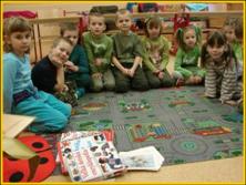 Pôvodne mala mať dnešná hodina viac zameranie prírodovedné a poznávacie. Plán bol okrem rozboru textu jednoznačný : zobrať encyklopédie, pohovoriť o tom, čo je to za kniha, na čo slúži a vyhľadať spoločne spomínané zvieratká z rozprávky. Potom sme mali zobrať obrázky, pomenovať živočíchy na obrázkoch a rozdeliť ich na skupiny takých, ktoré spia po cely rok zimným spánkom, ktoré sa budia, aby sa priebežne najedli zo svojich zásob, tie čo nespia cez zimu a tie, čo sa sťahujú. Nuž plány sú na plánovanie, ale vždy sa ich do bodky nepodarí splniť. A tak sa aj stalo. Keď dnes deti videli ježkov kožuch, masku veveričky a medveďa, hlavu žabky, deti chceli hrať rozprávkové príbehy. A tak si zahrali, ako Veveričky Hopka hľadá oriešky a zoznamuje sa s novými kamarátmi. V teplom lístí sa zasa skamarátili Ježko / podľa Miňa - Hrabajko / a Medveď Brumko a bratsky sa podelili s teplou listovou perinou do brlôžka. Zasmiali sme sa aj na kŕkajúcej žabe, čo z ničoho nič stuhla, keď zašlo slniečko. Aj Školienka skúšala všeličo, aby ju rozhýbala, pohla sa však, až keď opäť zasvietilo slnko. Až keď sa deti „vyhrali“, dostali sme sa aj k úlohám. No na encyklopédie čas nezostal. Nuž čo, nabudúce... Dnes sa milo prekvapilo, ako deti využili v dramatizácií v okamihu predstavovania básne z vystúpenia, ktoré pripravujeme. Bolo to skvelé, že deti dokážu použiť vhodne niečo, čo do príbehu podľa textu vlastne nepatrilo. |