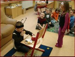 Po dlhej dobe, čo je viac ako 3 týždne, sme sa opäť ráno stretli so Školienkou. Už sme si mysleli, že nám zaspala zimným spánkom v malej komôrke. Ale nie, naša Školienka dostala povolenie od Matky prírody, aby v zime nespala a chodila do školy zarovno s deťmi. Dnes k nej však prišla nečakaná návšteva. Na rozprávku som sa tešila, pretože motív na dramatizáciu bol výborný a dalo sa v tejto téme veľa nového vymyslieť. Bolo však cítiť prázdniny a tak sa deti ťažko rozbiehali. No i tak sa zaskvel Alex v úlohe Bombuchy, keď „drkotavou“ rečou znázornil, ako veľmi vonku premrzol. Aj keď sa Mária veľmi snažila, i tak bola na Bombuchu málo prísna, keď ju hrešila za špinu v postieľke i na svojom tele. Adam ukázal, že je veľmi výrečný a tak uhostil Školienku, ako bolo treba. Spolu s Jakubkom dostala dramatizácia švih. No i tak som cítila, že sme urobili trocha krok späť aj napriek tomu, že sme si text riadne rozobrali. Tak som si vyskúšala Školienku a Max mi pomohlo. Deti sa smiali, lebo som si vymyslela i to, čo tam nebolo. Niektoré deti aj namietali, že Školienka si v rozprávke nespievala, keď klopkala Bombucha na dvere. Stačila ale len otázka: A nepáčilo sa vám to? Nemohla by si spievať? A nikto nepovedal viac slovo. Pobavili sa a to sa im páčilo. ( Uvidíme, či využijú niečo z mojej ukážky. Ak áno, budem to používať častejšie. ) Náš príbeh má otvorený koniec. Neprezrádza, či sa po návšteve u čistotnej Školienky Mucha poučila a stala čistotnejšia. A tak som využila príležitosť a nastolila som problémovú otázku. Deti, uchvátené Muchou, boli až veľmi optimistické. Jednoznačne sa vyjadrili, že od toho dňa je Bombucha čistotná. Iba Alex spochybnil tvrdenie detí zvláštnou otázkou: A čo keď tá Mucha Bombucha žije s veľkou rodinou v spoločnej chalúpke? A stalo sa to, čo poznáme v škole. Zazvonilo a školský rozhlas spustil discozvučku, ktorú je ťažko prekričať a tak hodina skončila. Ja som sa ale so Silvou dohodla, že k osudu Muchy Bombuchy sa ešte isto vrátime. Sama som zvedavá, či má veľkú rodinu a ako to asi u takej muchy vyzerá. Má vôbec dom? |