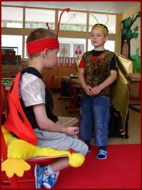 A sme na konci. Dnes prišla naša posledná rozprávka. Samozrejme nám ešte zopár hodín do konca školského roku ostáva a budeme sa Školienke a jej kamarátom venovať. Budeme nacvičovať hry na vystúpenie, ktoré pre deti pripravujeme. Budeme sa viac učiť o hmyze a riešiť zábavné úlohy z lúky a prírody. Dnes sme sa po prečítaní rozprávky venovali dramatizácii a riešili sme úlohy v PowerPoint prezentácii pod názvom Školienka v ZOO. Pre dramatizáciu sme si vybrali rozhovor Motýľa zo zlatými krídlami, ktorý sa rozprával so smutnou Školienkou zo záveru príbehu. Za celý rok deti urobili v dramatizácii veľké pokroky. Kým zo začiatku im bolo treba veľa našepkávať, keď nevedeli ako na to, dnes sa pred nami odvíjala krásna improvizácia, kde Miňo ( syn autorky rozprávok )ako lienka smútil za tým, že končí prvá trieda a už nebudú nové rozprávky o nej. Potom sme sa venovali úlohám a rébusom. Deti mali ohromnú radosť, keď sa vystriedali pri interaktívnej tabuli. Učenie s tabuľou milujú. Vďaka vedeniu v škole máme už všetku techniku namontovanú tak, že ju nemusím každé ráno rozkladať. Je to obrovská výhoda. Myslím, že by takáto výbava triedy dnes mala byť štandardom. Žiaľ nie je a ani tak skoro nebude. |