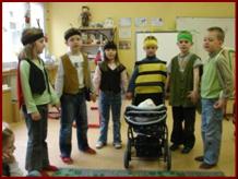 Púšťame sa do ďalšieho nácviku vystúpenia. V meste na Mestskom úrade pravidelne raz za 3 mesiace slávnostne prijímajú nových občiankov mesta. Naposledy sme hrou o štvorčatách našej Evičky mali veľký úspech. A tak pripravujeme všetko potrebné na to, aby prišla na svet hra O puknutom vajíčku. Naše vajíčko je už na svete, jednoducho sme si ho vykašírovali . |